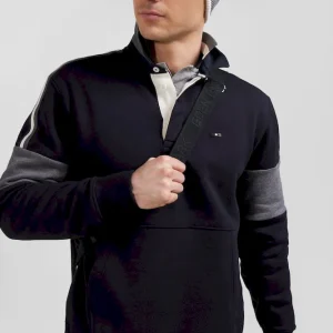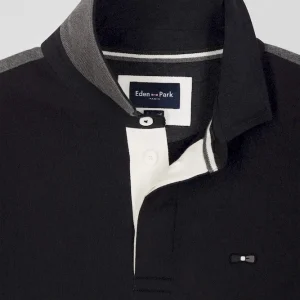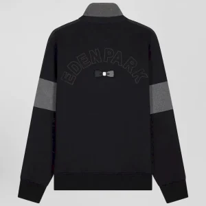 Notre sweatshirt homme, disponible en noir ou bordeaux, est conçu en molleton gratté pour un confort optimal. Les découpes brassard aux manches et le col de maillot de rugby en twill, doublé de bords-côtes tricotés, lui ajoutent une touche sportive. Un ruban tricoté tricolore longe les épaules, tandis que le dos arbore fièrement un lettrage EDEN PARK et un nœud brodé tricolore, surmonté d’une application de tissu.