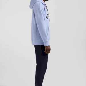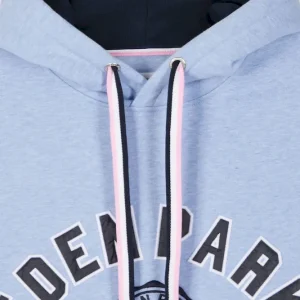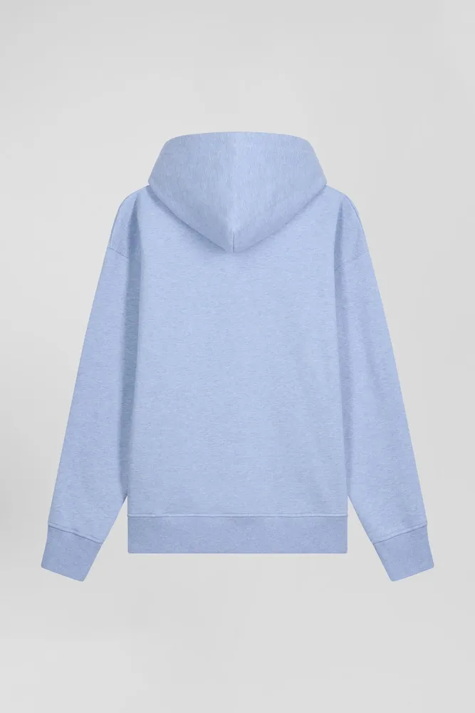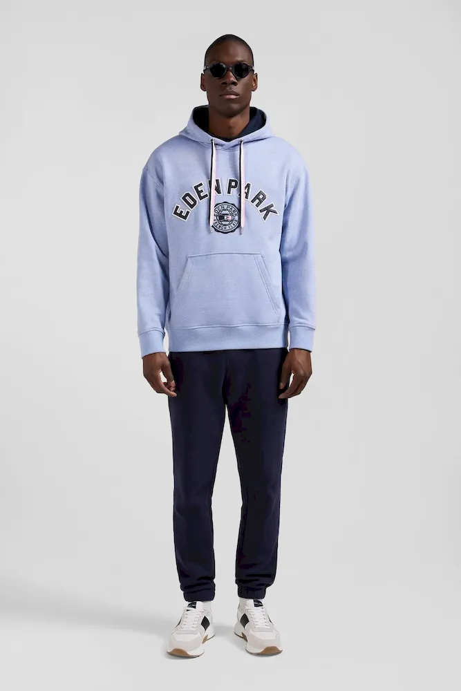 Proposé en coloris bleu ciel ou gris, ce sweatshirt à capuche pour homme signe une allure sportive et travaillée. Sa coupe oversized ample, à la fois tendance et confortable, souligne l’esprit décontracté de ce hoodie masculin. Sa poche kangourou est surmonté d’un lettrage au nom de notre Maison contrastant avec son ruban de serrage rose.