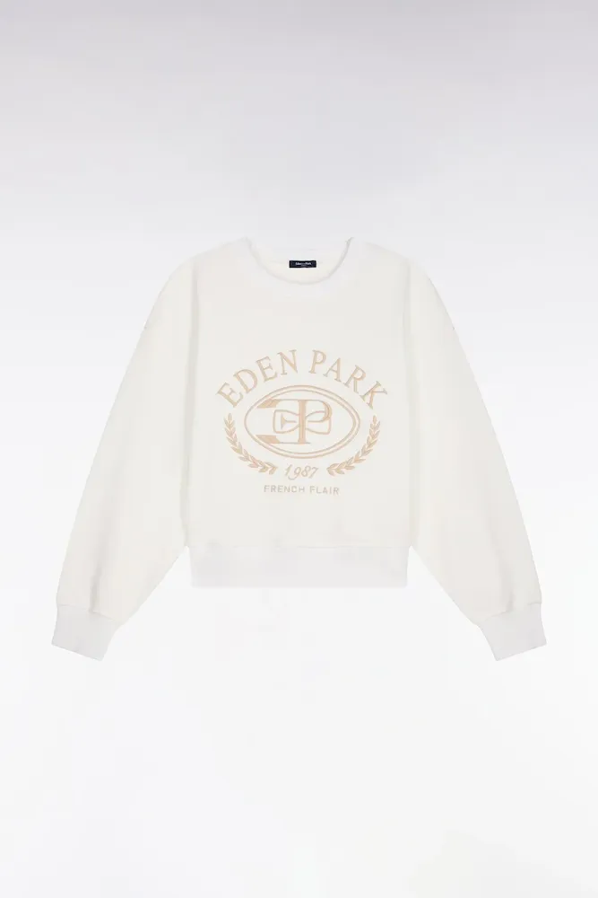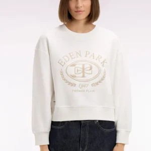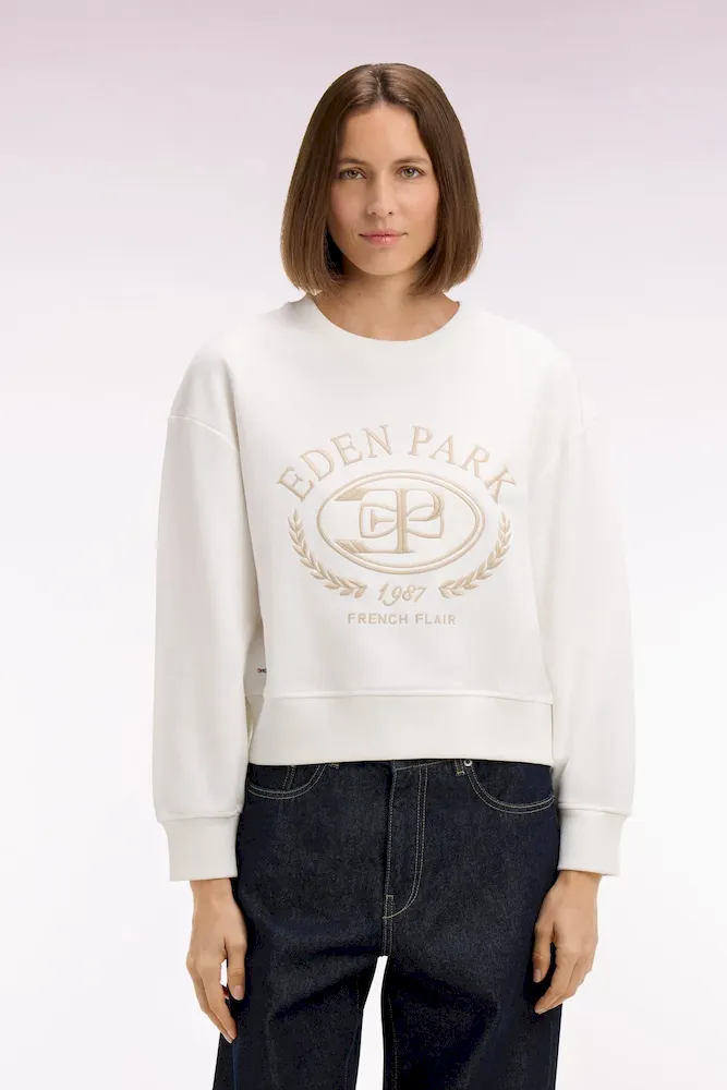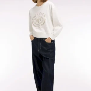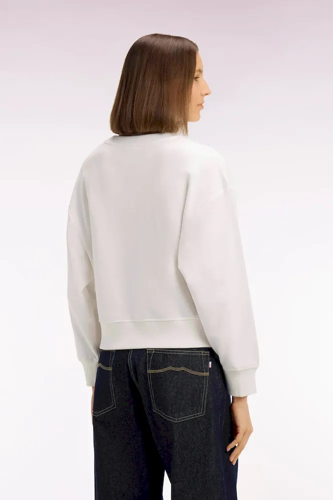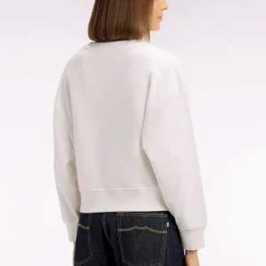 Notre sweatshirt femme à manches longues adopte une coupe relaxed qui mêle confort moderne et allure tendance. Son col rond, souligné de finitions en bords-côtes aux poignets, au col et au bas du corps, structure la silhouette sans la contraindre. Sa broderie frontale aux accents Ivy League rétro signe cette pièce sport-chic dont le style se déploie dans une sélection de polos et de pièces masculines. Facile à associer à un jean ou un pantalon tailleur beige fluide, ce sweatshirt offert en rose ou en écru revisite l’esthétique college dans une version douce, féminine et contemporaine ultra désirable. À porter en semaine comme en week-end pour mettre en valeur votre style.
