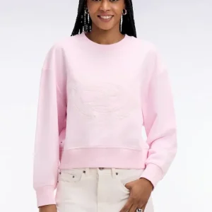 Notre sweatshirt femme à manches longues adopte une coupe relaxed qui mêle confort moderne et allure tendance. Son col rond, souligné de finitions en bords-côtes aux poignets, au col et au bas du corps, structure la silhouette sans la contraindre. Sa broderie frontale aux accents Ivy League rétro signe cette pièce sport-chic dont le style se déploie dans une sélection de polos et de pièces masculines. Facile à associer à un jean ou un pantalon tailleur beige fluide, ce sweatshirt offert en rose ou en écru revisite l’esthétique college dans une version douce, féminine et contemporaine ultra désirable. À porter en semaine comme en week-end pour mettre en valeur votre style.