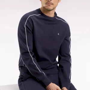 Sweatshirt en molleton marine passepoils colorés