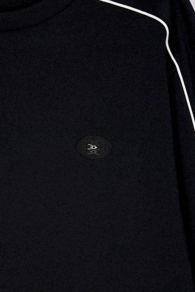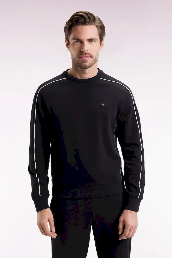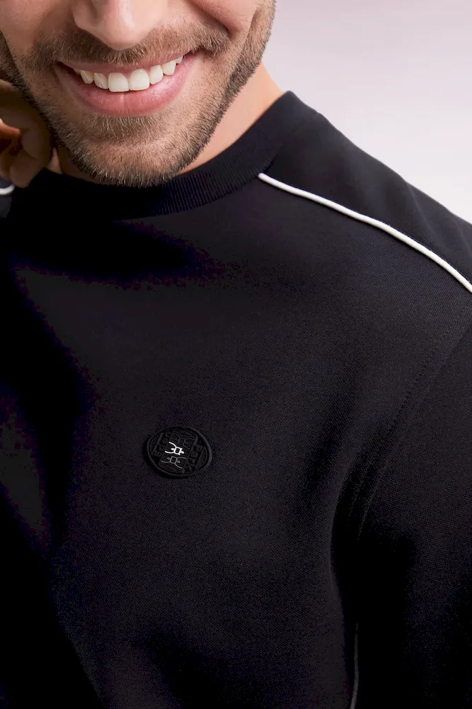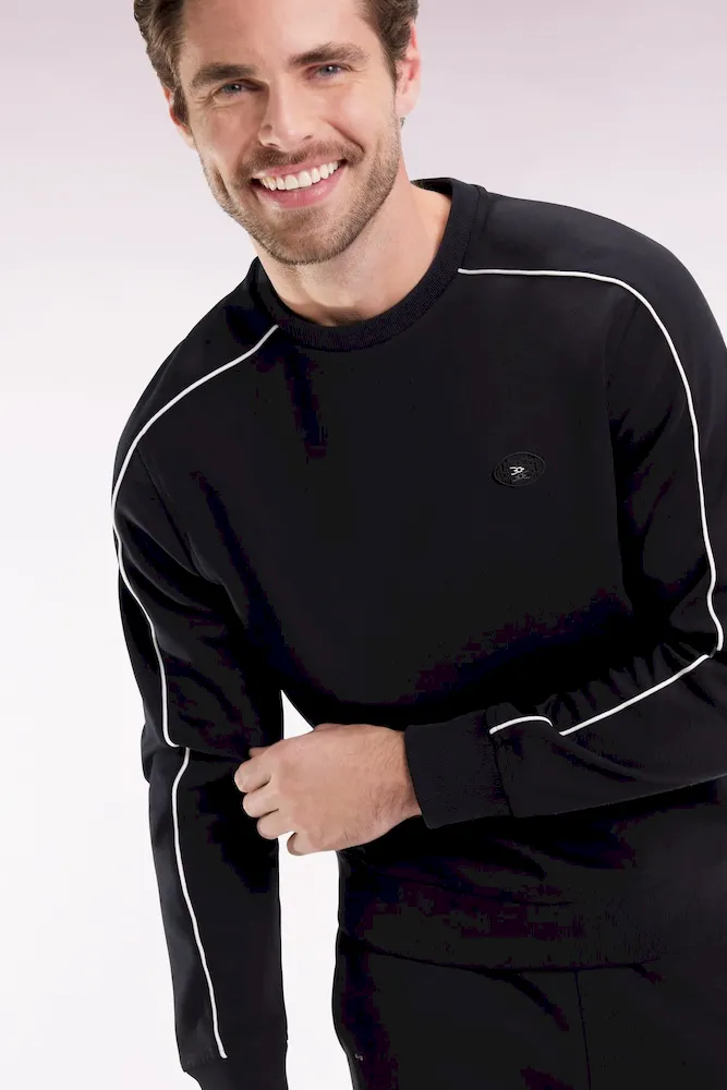 Sweatshirt en molleton noir passepoils colorés