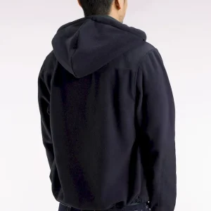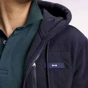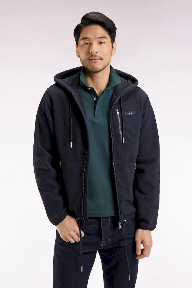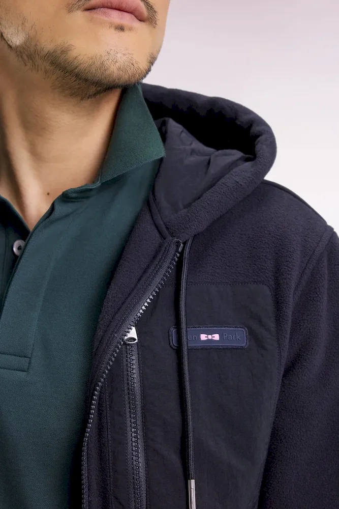 Sweatshirt zippé à capuche bimatière marine coupe droite