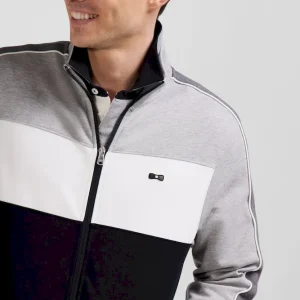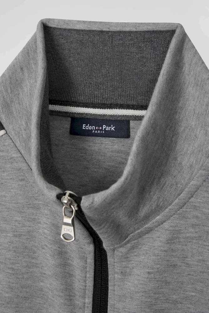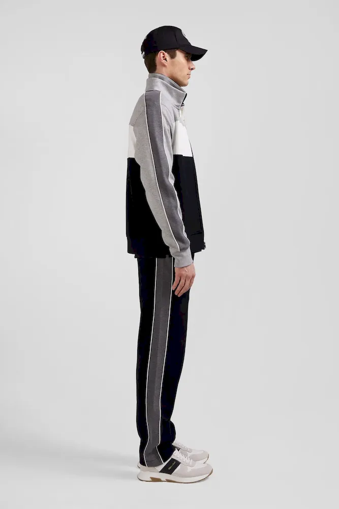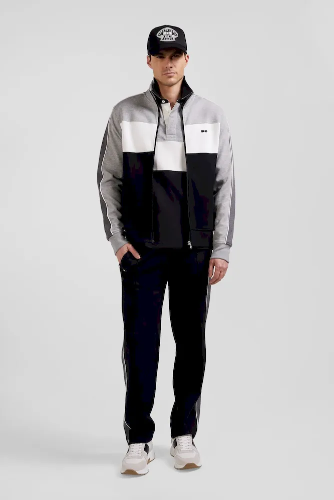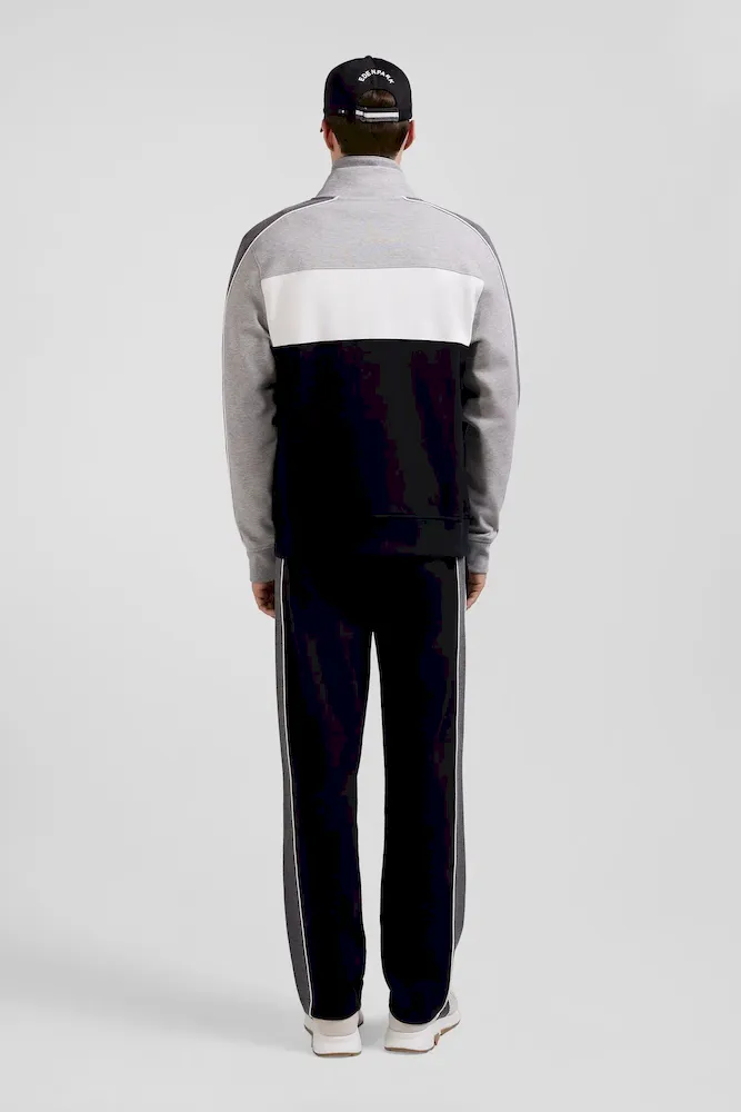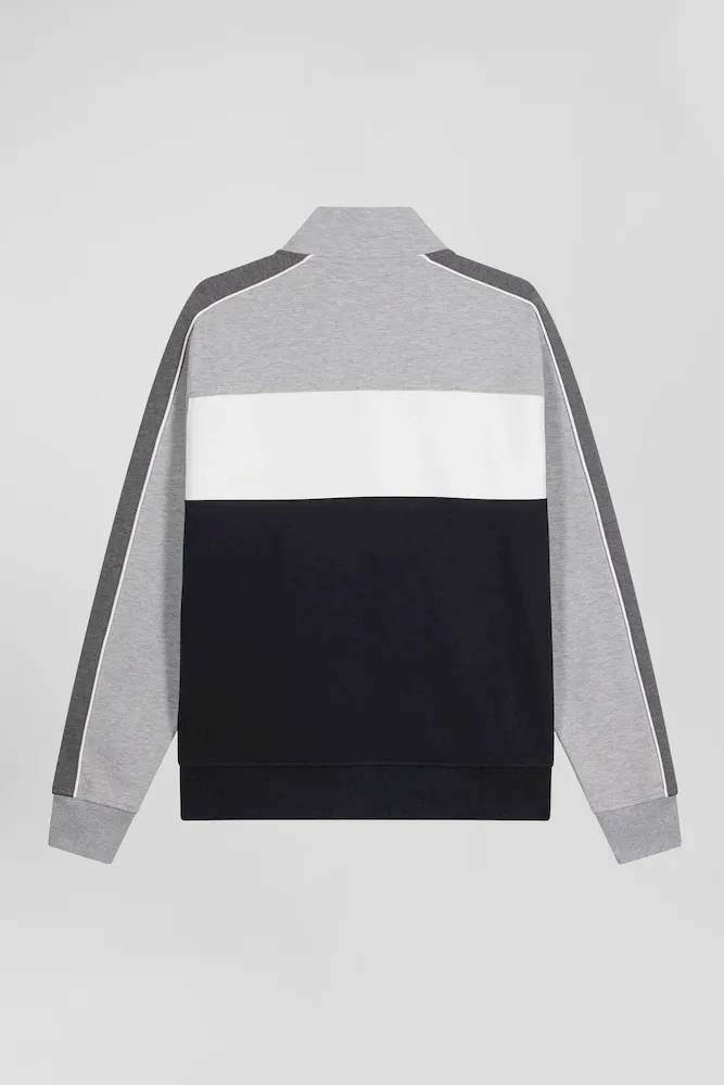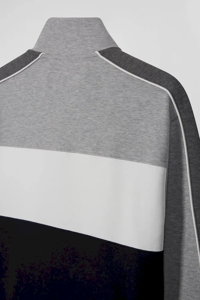 Sweatshirt zippé colorblock en coton mélangé noir coupe Regular
