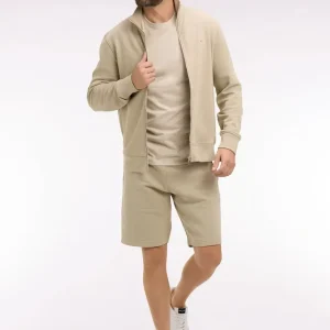 Sweatshirt zippé en molleton coton beige