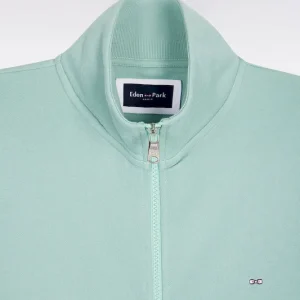 Ce sweatshirt zippé au style épuré modernise l’allure sport chic. Réalisé en molleton de coton pur pour un confort de porter incomparable, il se distingue par ses finitions soignées et sa discrète broderie nœud papillon, signature des amateurs du vestiaire Eden Park. Coordonné au pantalon de jogging ou au short en molleton assorti, il compose une silhouette élégante et décontractée à la fois. Ne reste plus qu’à choisir votre coloris allié !