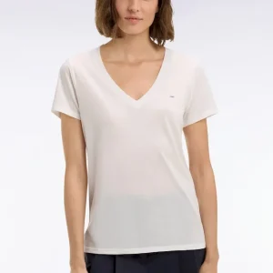 Ce T-shirt femme à manches courtes en coton Pima offre un porter doux et confortable saison après saison. Léger, respirant et thermorégulateur, le coton Pima écoresponsable est parfait pour l’été. Disponible en trois coloris intemporel, ce T-shirt à col V s’adapte à toutes vos tenues, des plus simples aux plus travaillées.