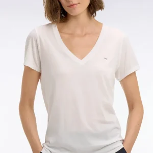 Ce T-shirt femme à manches courtes en coton Pima offre un porter doux et confortable saison après saison. Léger, respirant et thermorégulateur, le coton Pima écoresponsable est parfait pour l’été. Disponible en trois coloris intemporel, ce T-shirt à col V s’adapte à toutes vos tenues, des plus simples aux plus travaillées.
