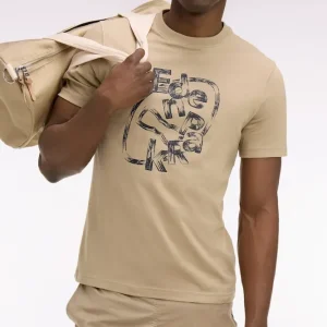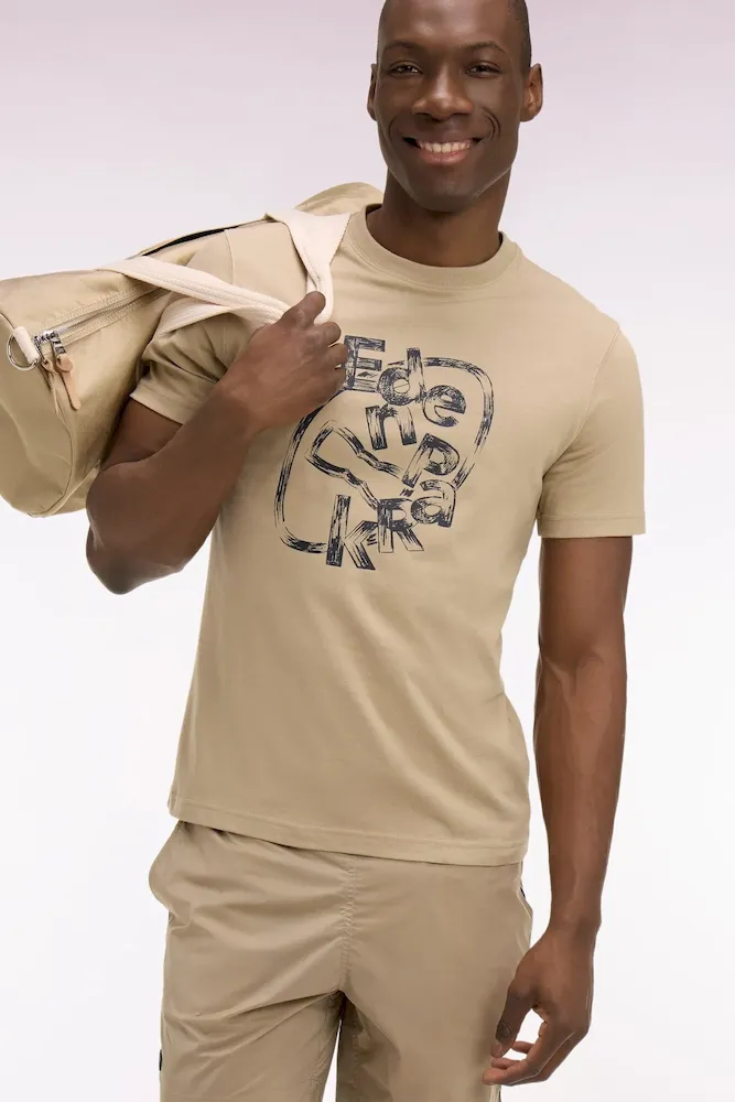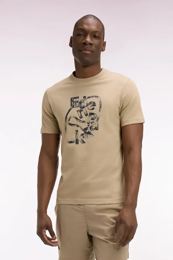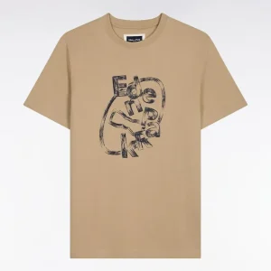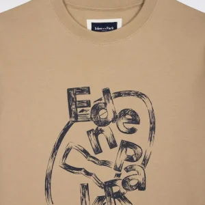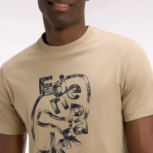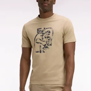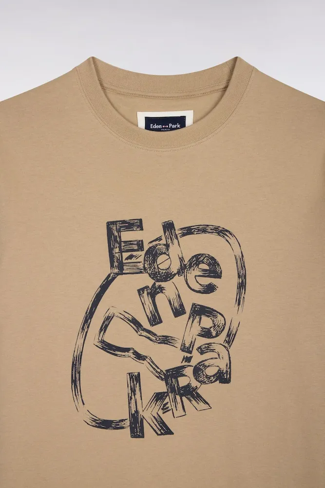 T-shirt à manches courtes en coton beige sérigraphié coupe regular