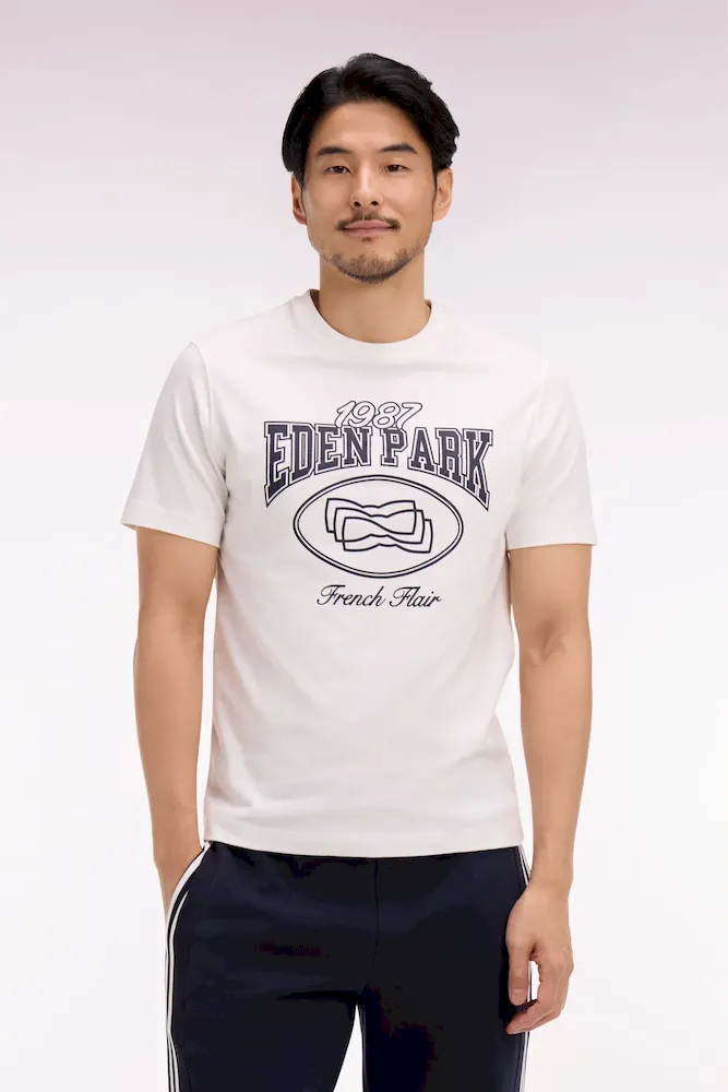 Ce T-shirt manches courtes adopte une coupe droite confortable et se distingue par une sérigraphie Eden Park exclusive. Le graphisme revisite les codes emblématiques de la Maison avec une lecture contemporaine, pensée pour un quotidien urbain comme pour les vacances. Une pièce facile à associer, idéale pour affirmer votre style dans ses coloris écru ou rouge.