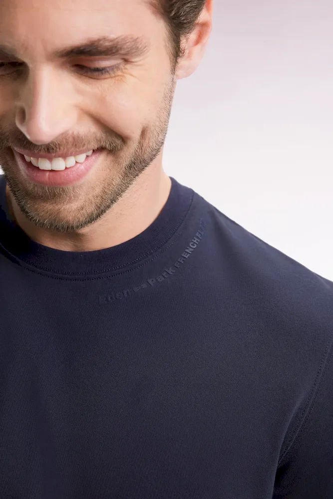Ce T-shirt masculin réalisé en jersey de coton doux est un hommage à la simplicité maîtrisée. Parfait pour les superpositions ou porté seul, il affiche une silhouette épurée ponctuée d’un petit nœud papillon brodé sur la manche et de notre logo en impression en relief discrètement ajoutée sous son col rond marqué par un tricotage bords-côtes. Un modèle intemporel léger et respirant, fidèle à l’élégance sportive Eden Park. Ce modèle est décliné en noir ou en marine et s’accorde aisément à un jean ou un jogging