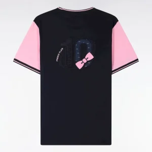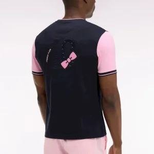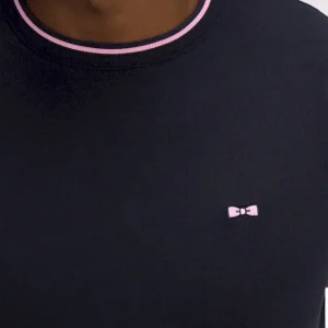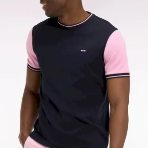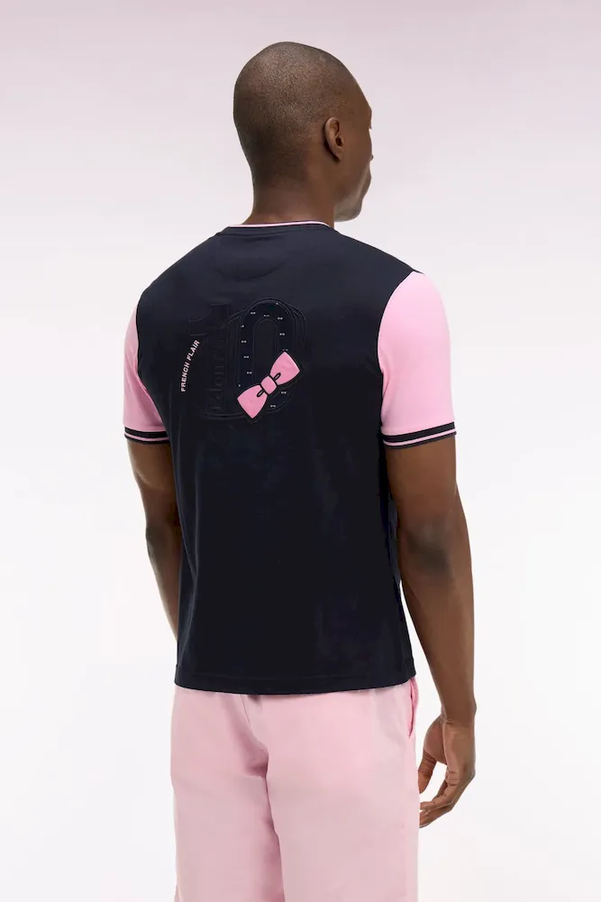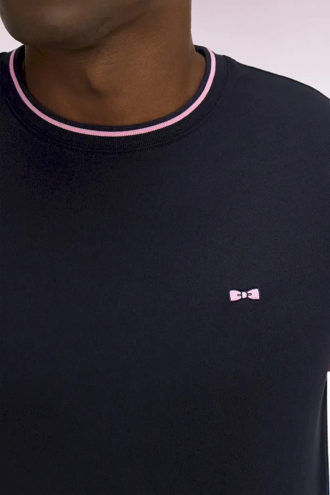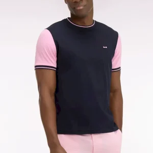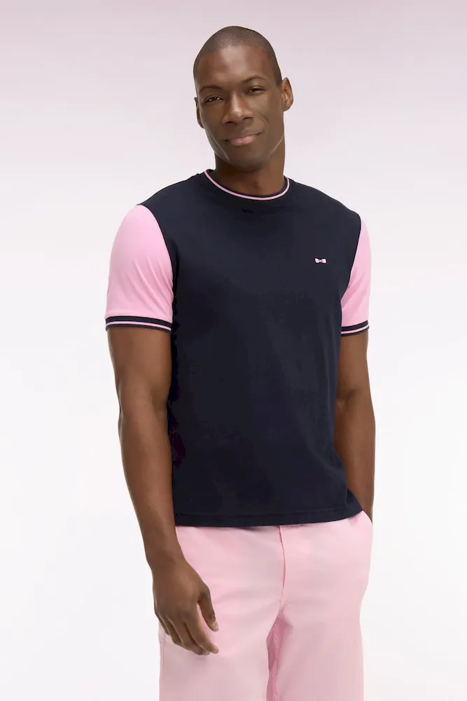 T-shirt à manches courtes en coton marine manches roses coupe regular