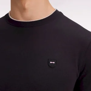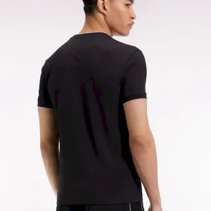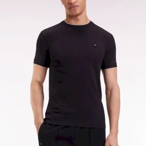 Ce T-shirt en jersey de coton stretch est rehaussé de fines rayures contrastés à même ses bords-côtes en bordure de col et de manches pour une touche graphique discrète. Un essentiel revisité avec subtilité dans une coupe slim ajusté à glisser dans tous les vestiaires