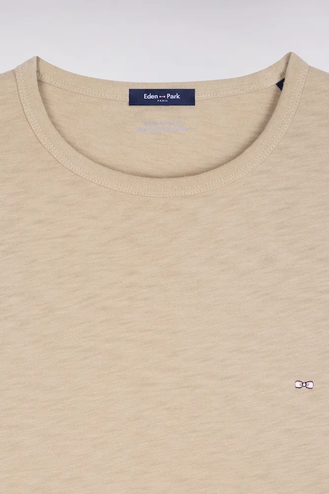 Ce T-shirt droit en jersey de coton slub affirme l’intemporalité et la durabilité de notre vestiaire. Doté d’un col rond seyant il se distingue par sa petite broderie nœud papillon rose, signature discrète et élégante de notre Maison. Ce basique de qualité traversera les saisons avec style. Un vrai pilier pour donner libre cours à votre créativité mode.