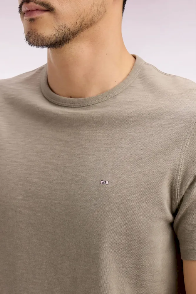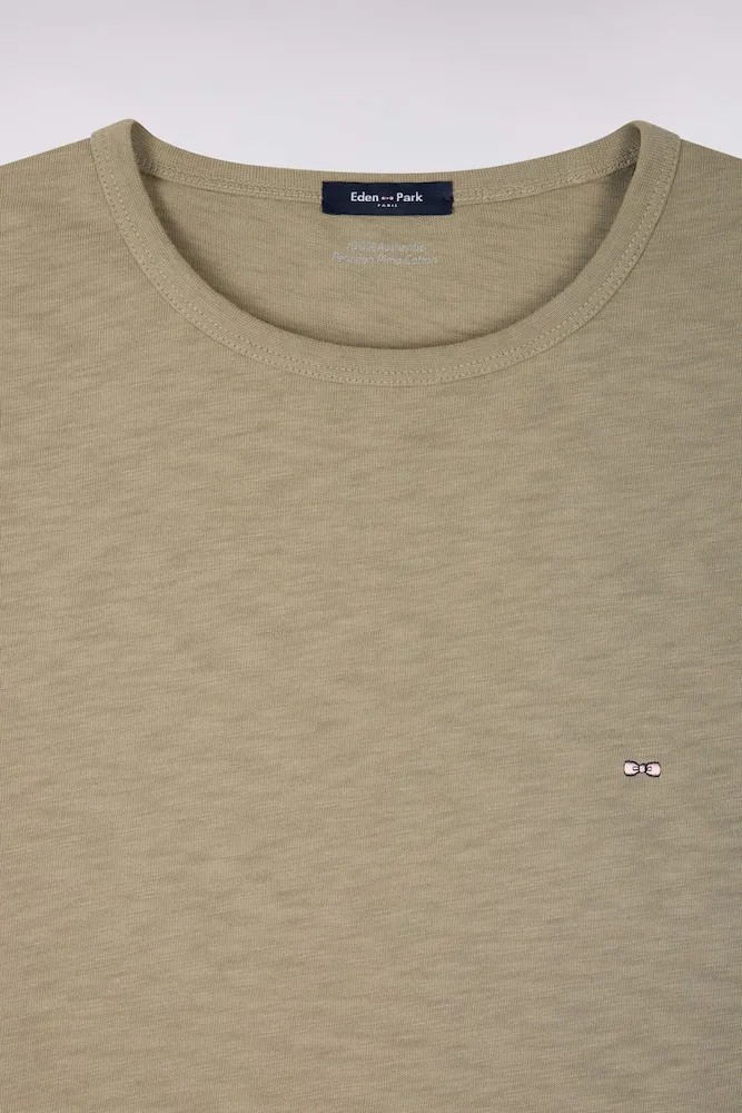 T-shirt à manches courtes en jersey de coton slub kaki coupe regular