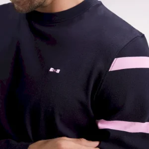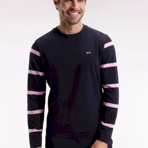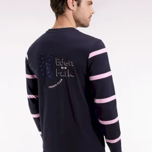T-shirt à manches longues en coton marine à manches rayées