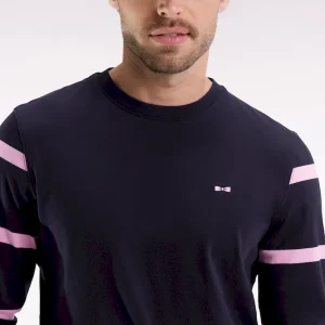 T-shirt à manches longues en coton marine à manches rayées