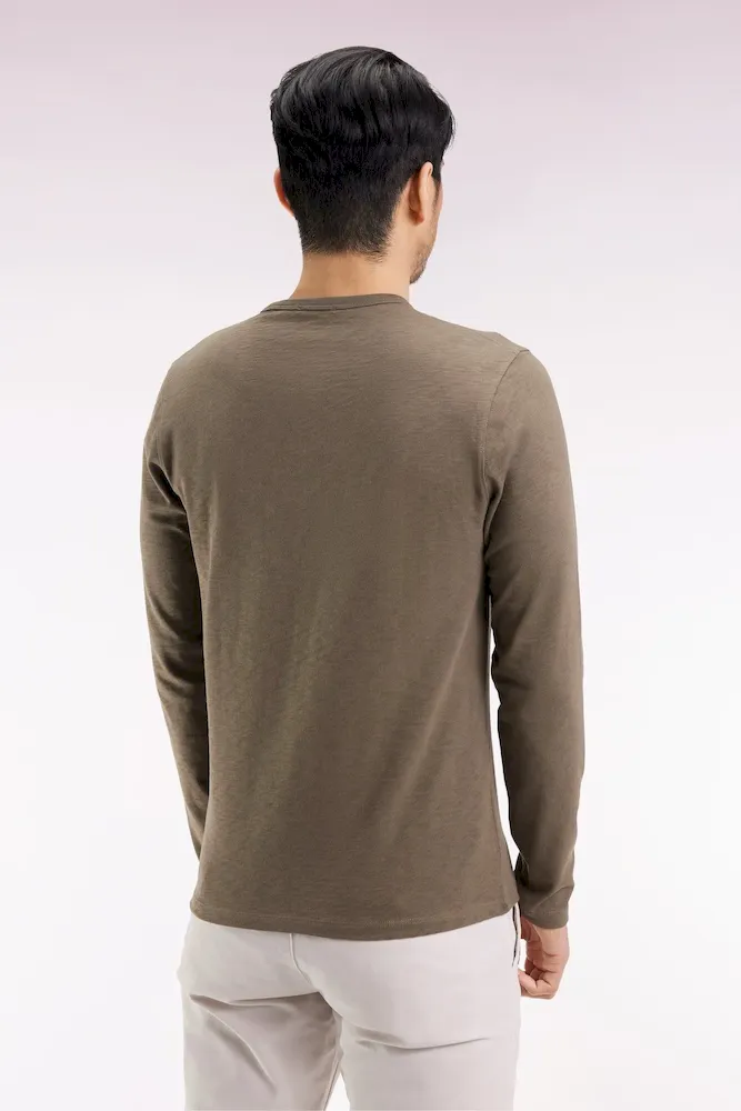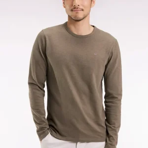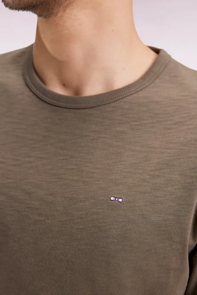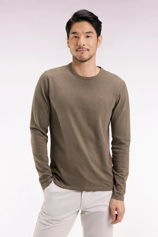 Ce T-shirt à manches longues est confectionné dans un jersey de coton slub pour un effet texturé naturel décliné dans une large palette de coloris. L’encolure en bords-côtes lui apporte tenue et confort. Un basique du vestiaire de tous les jours, à porter seul ou en superposition