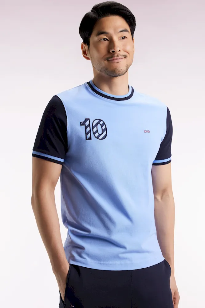 Ce T-shirt à manches courtes illustre le savoir-faire des ateliers Eden Park et le style sport-chic propre à notre vestiaire. Réalisé en jersey de coton doux et léger, il offre une tenue souple et agréable au quotidien. Ses bords-côtes rayés, ses manches contrastées et sa broderie 10 rehaussée de tissu cravate cerclé en font un modèle travaillé aussi