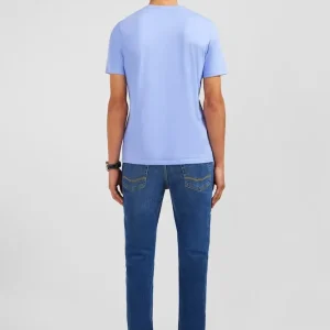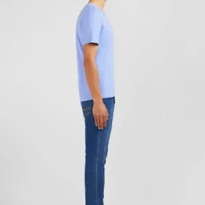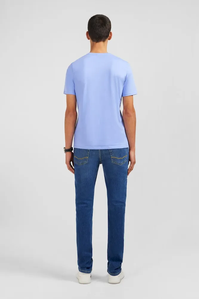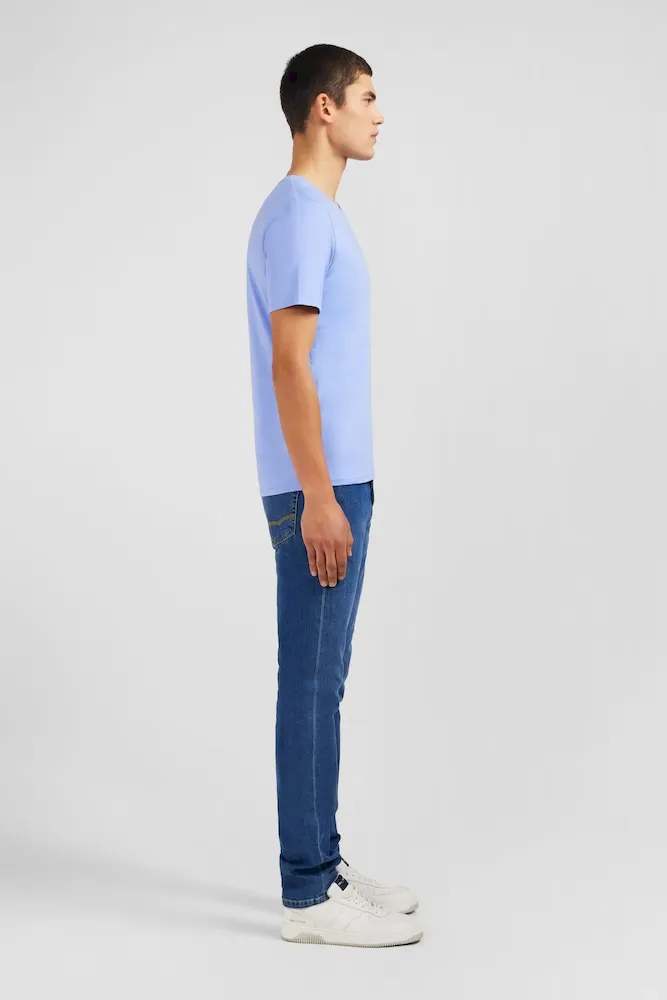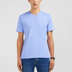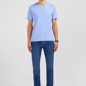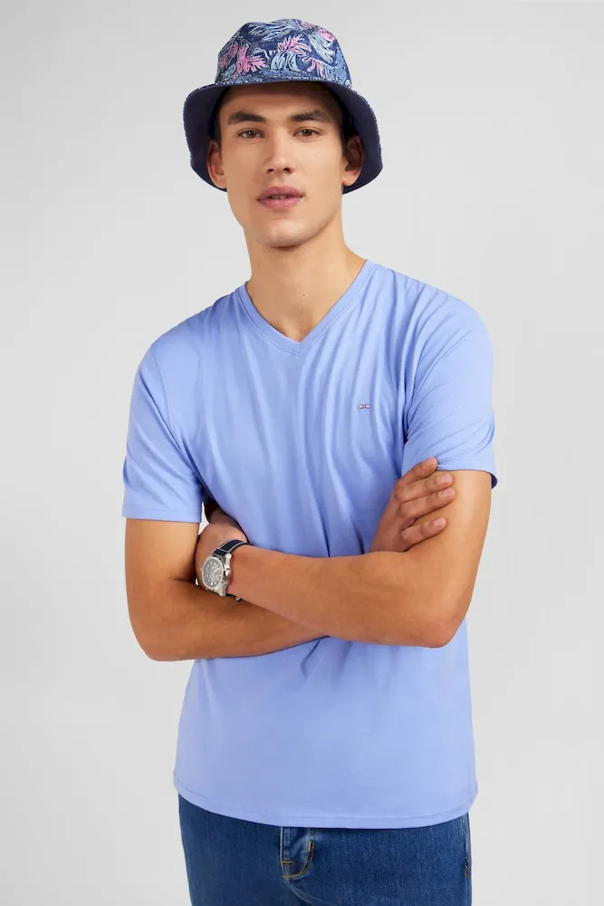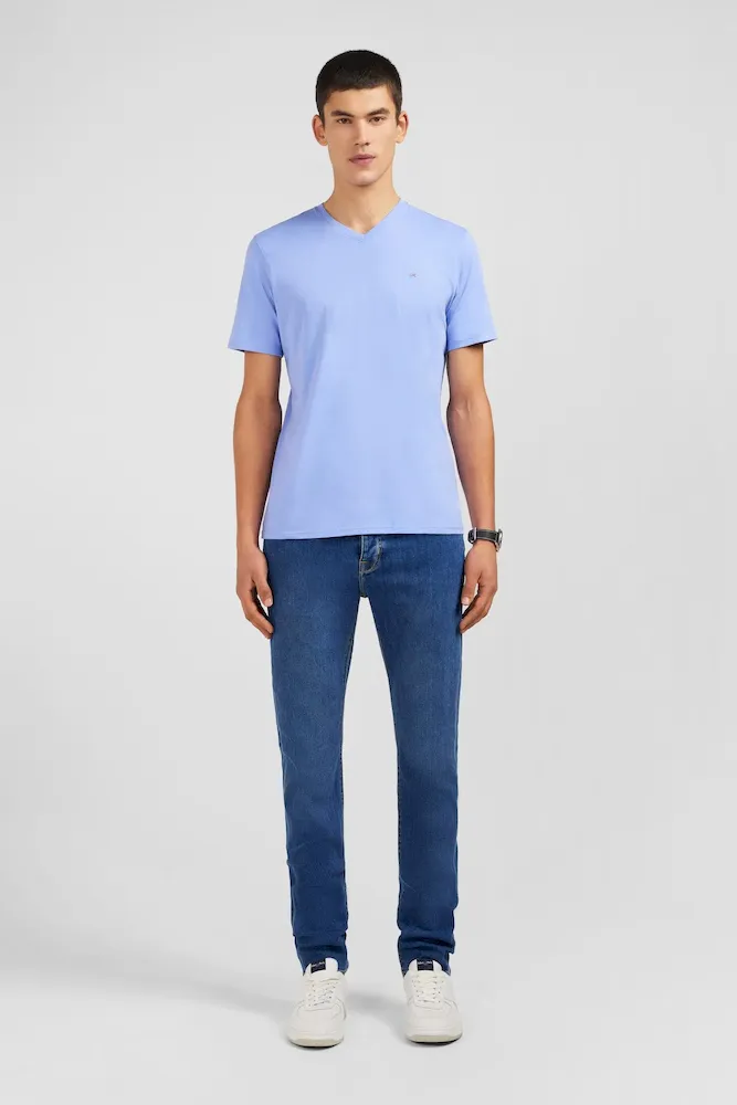 T-shirt bleu col V à manches courtes