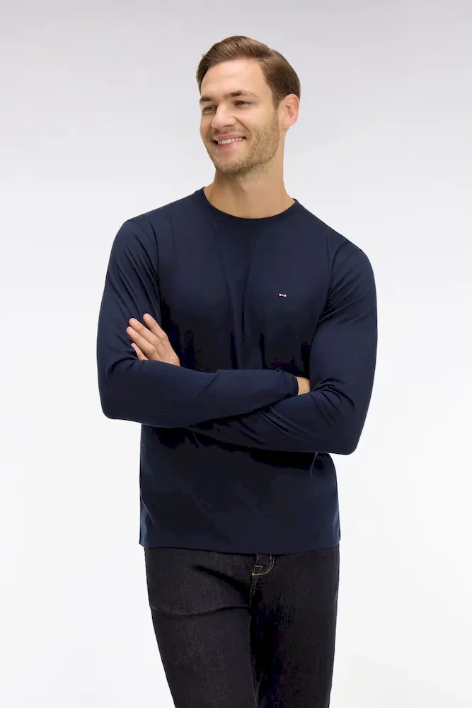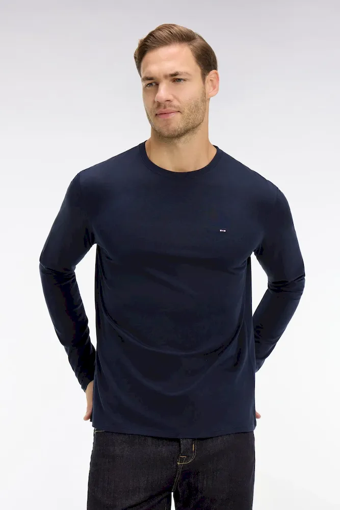 T-shirt bleu marine col rond à manches longues