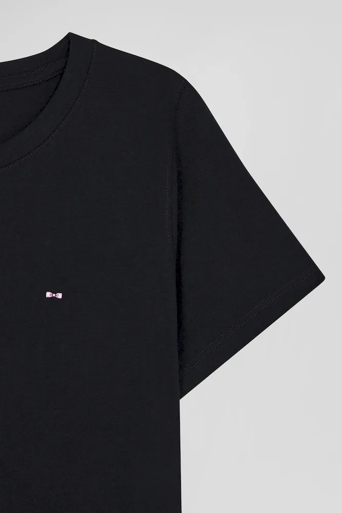 Notre T-shirt femme en pur coton est parfait pour un quotidien plus conscient et confortable. Avec sa coupe Regular droite et une broderie nœud papillon subtile, ce basique allie élégance et durabilité. Indémodable, ce T-shirt col rond se décline dans 4 coloris intemporels facile à assortir.