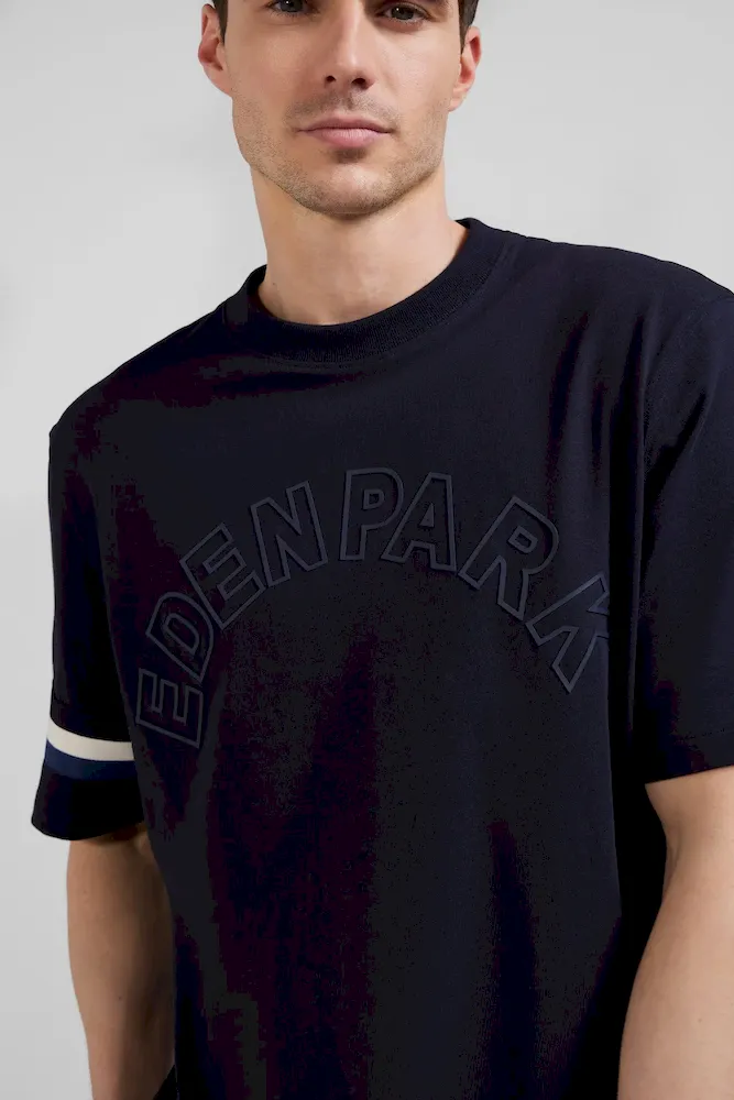 Emblématique de l’esprit Eden Park, ce confortable T-shirt homme en jersey de coton arbore une sérigraphie au nom de notre maison et des bords-côtes tricots rayés savamment placés sur l’une de ses manches courtes. Ce modèle est proposé en coloris gris ou bleu marine pour s’accorder à votre vestiaire de saison.