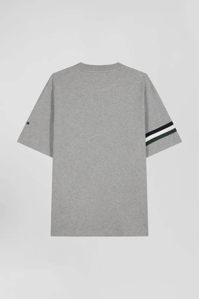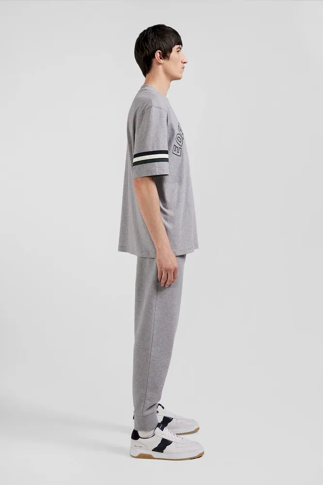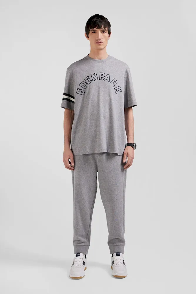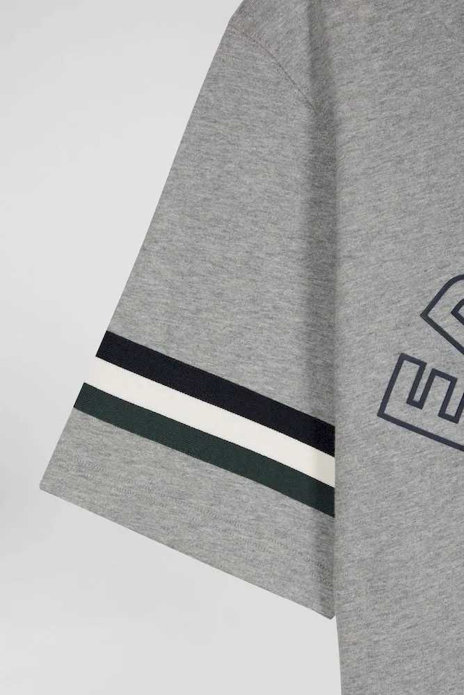 Emblématique de l’esprit Eden Park, ce confortable T-shirt homme en jersey de coton arbore une sérigraphie au nom de notre maison et des bords-côtes tricots rayés savamment placés sur l’une de ses manches courtes. Ce modèle est proposé en coloris gris ou bleu marine pour s’accorder à votre vestiaire de saison.