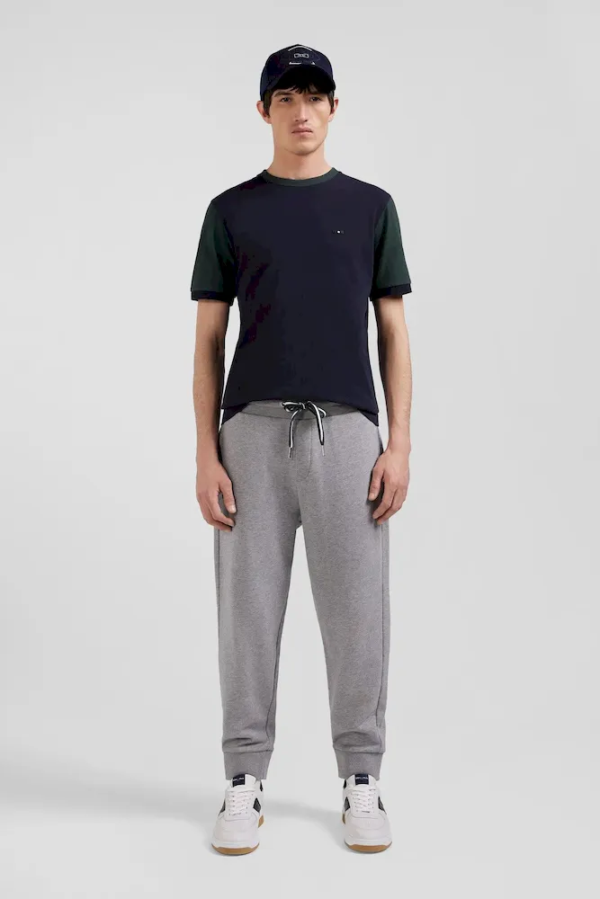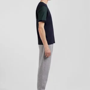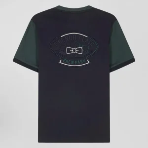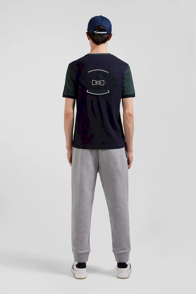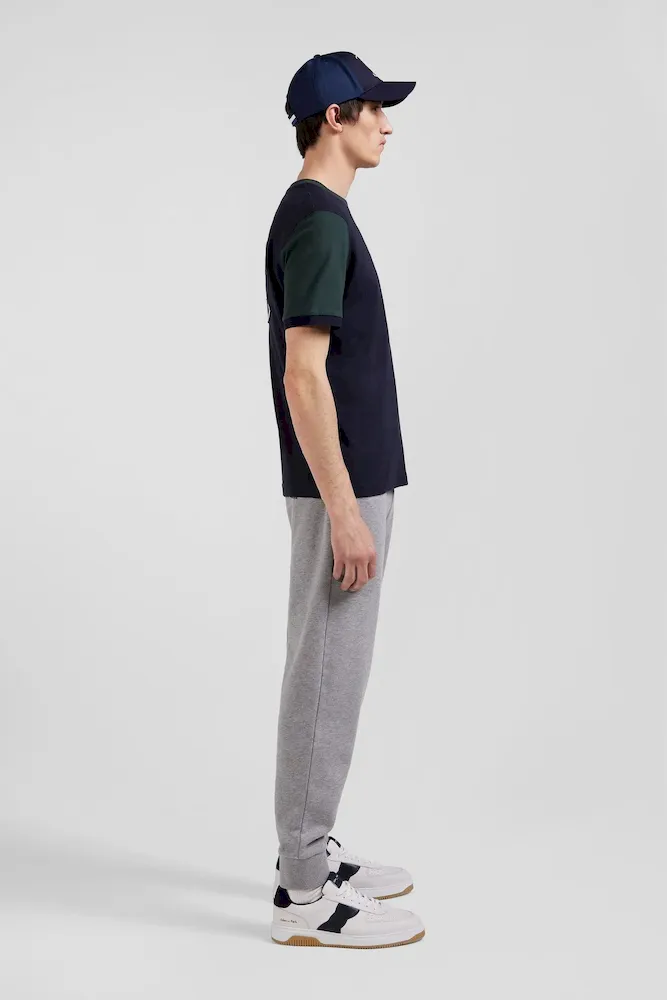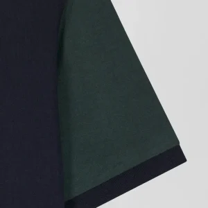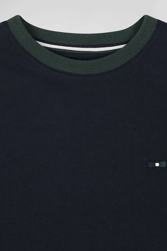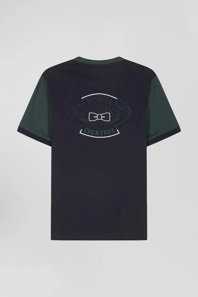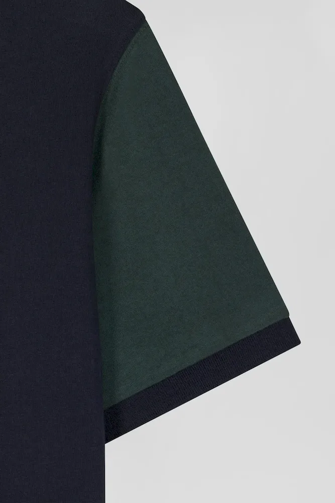 T-shirt manches courtes en coton vert à manches contrastées coupe Regular
