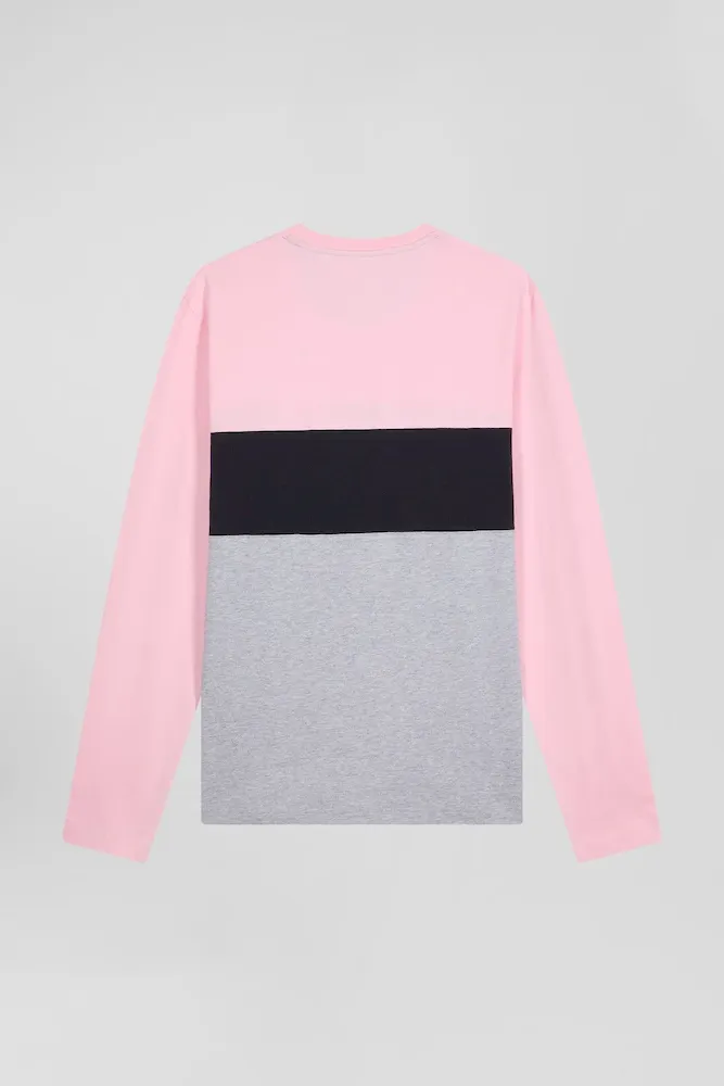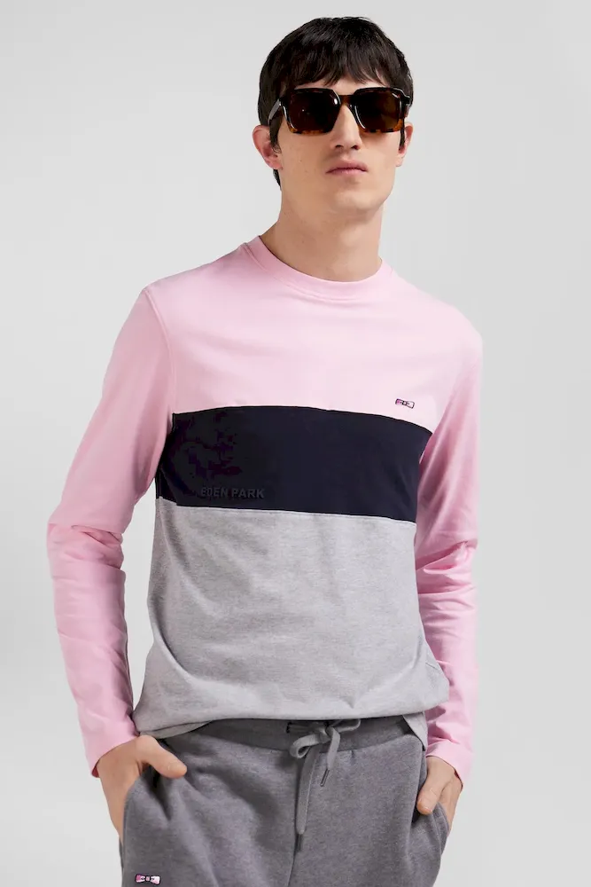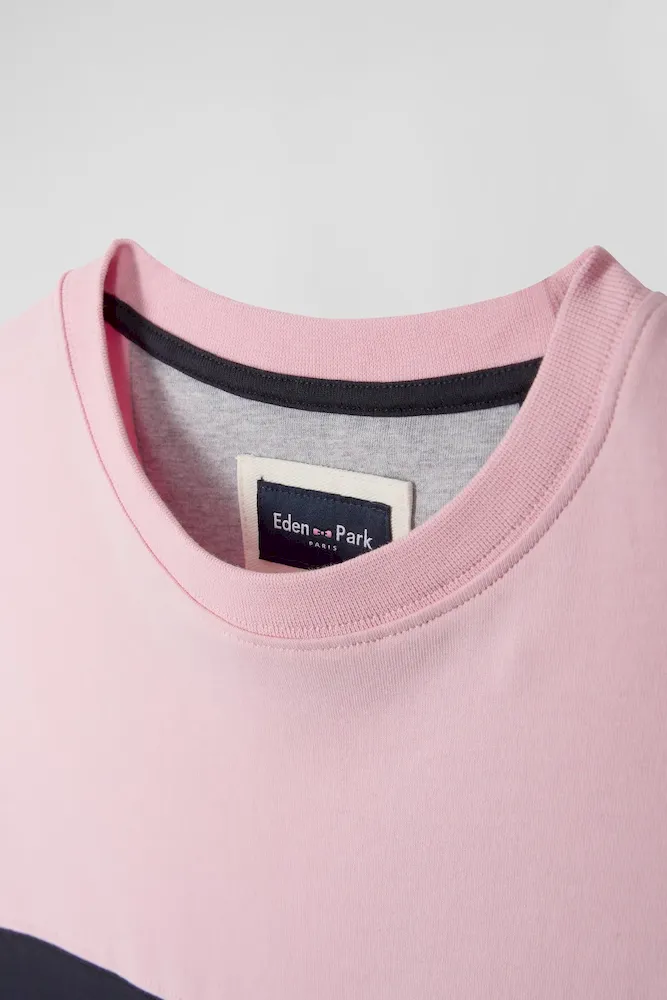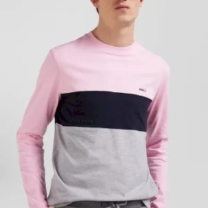 Le colorblock, inspiré des maillots de rugby, est devenu une signature du vestiaire Eden Park. Pour l’automne hiver c’est sur un confortable T-shirt à manches longues en jersey de coton que notre Maison assemble avec goûts ses couleurs iconiques.