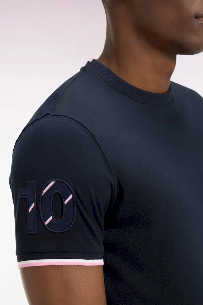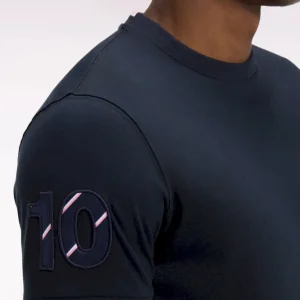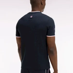 Ce T-shirt rend hommage au rugby français à travers des éléments, broderies, badges et sérigraphies, mêlant le coq emblématique et les codes graphiques Eden Park. La coupe droite et la sobriété de ce T-shirt aux bords-côtes contrastés rayés en font une pièce facile à porter, pensée pour prolonger l’esprit du XV de France dans un registre soigné. Prêt pour l’après match ?