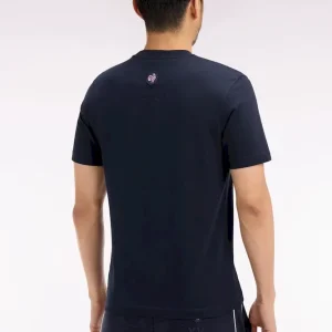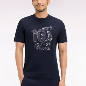 Ce T-shirt en jersey de coton marine à la coupe droit met en scène une sérigraphie exclusive associant le coq emblématique, la signature du XV de France et le 10 maillot signatures de notre Maison. Le graphisme, traité dans une approche ludique et élégante, affirme l’héritage rugby de la Maison. Un modèle facile à porter, pensé pour le quotidien comme pour l’après-match.