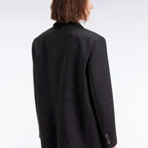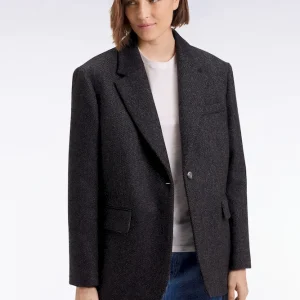 Confectionnée dans un twill de laine gris foncé, cette veste coupe oversized impose son style affirmé. Sa coupe droite modernisée, son unique bouton apparent et ses finitions soignées : revers crantés, poches à rabat, boutonnières de poignets et doublure à larges rayures rugby, en font un indispensable du vestiaire chic décontracté. À associer à un jean pour casser les codes, ou à un pantalon plus habillé pour une allure tailleur modernisée. Le soin apporté aux finitions de cette veste reflète notre exigence en matière de style et de qualité